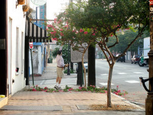 Pruning crepe myrtles in Church Hill. Pruning the low branches on street trees prevents damage by vehicles and provides room for pedestrians on the sidewalk.